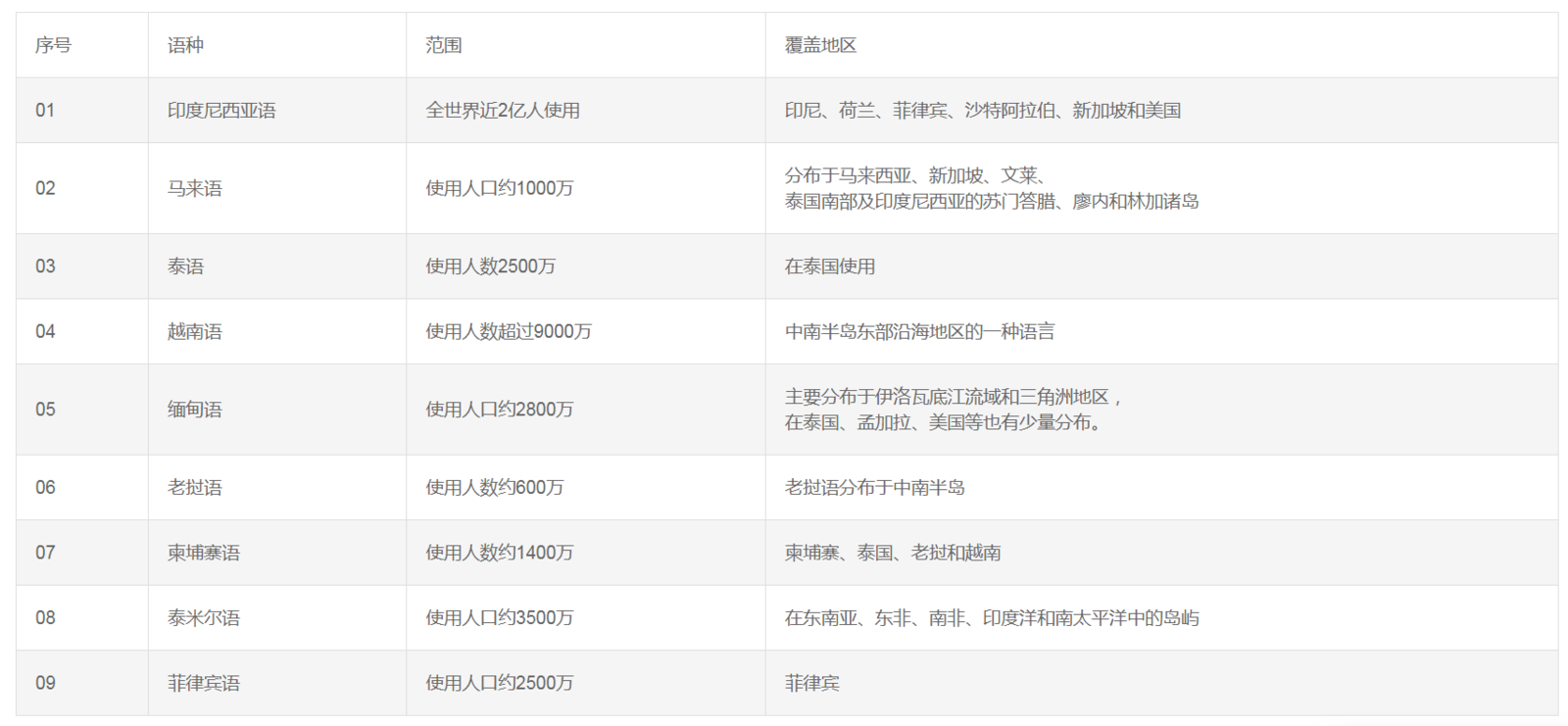 小語種市場熱度排行